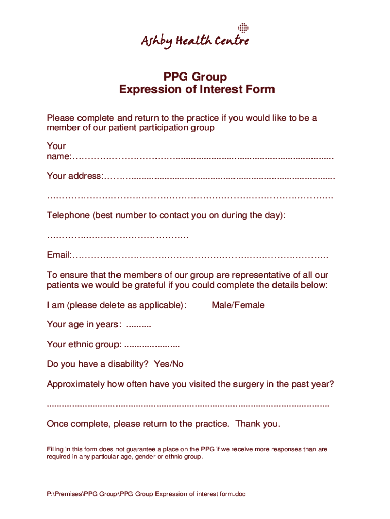 Get the free PPG Group Expression of interest form