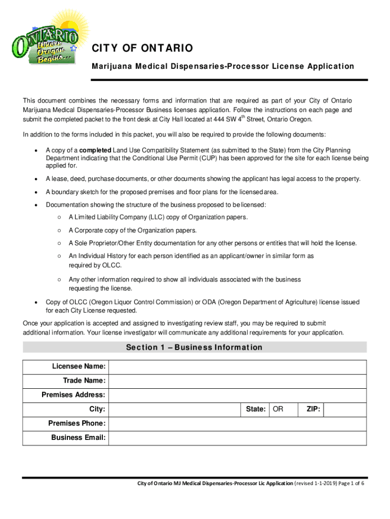 CITY OF ONTARIO Marijuana Medical DispensariesProcessor License Applications document combines the necessary forms and information that are required as part of your City of Ontario Marijuana Medical