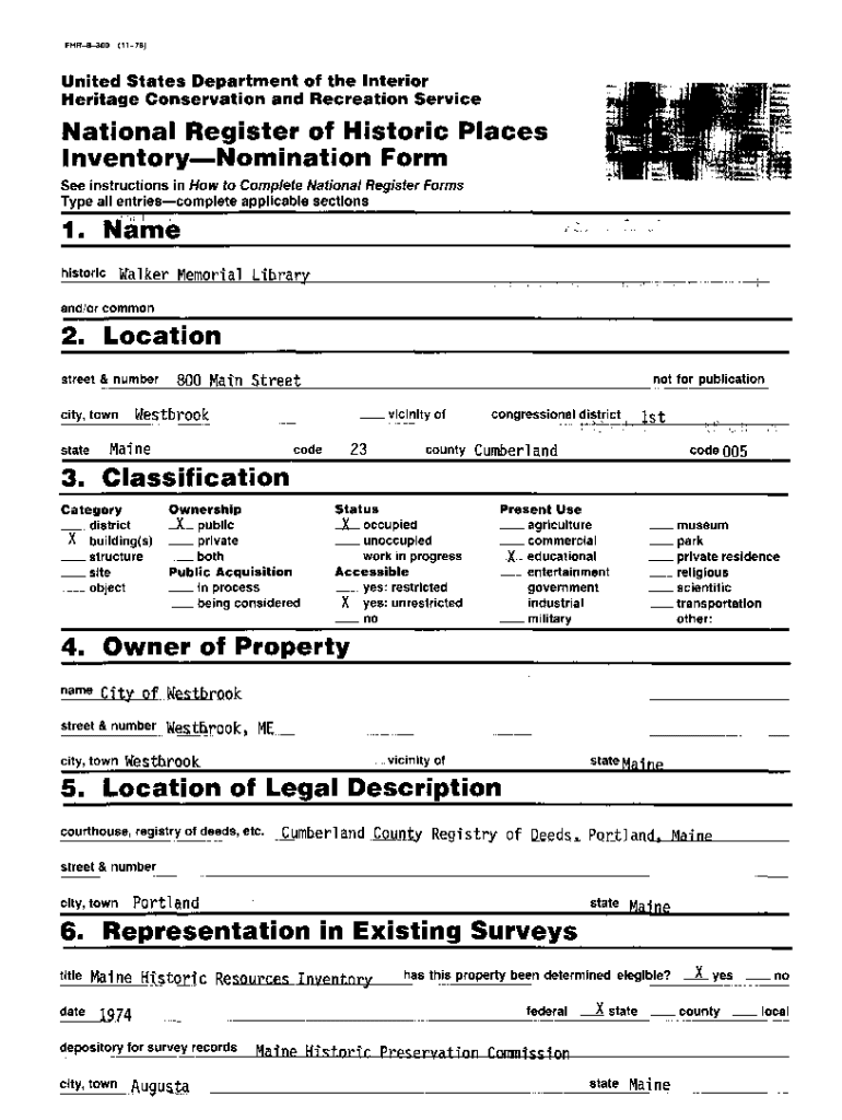 FHR8300(1178)United States Department of the Interior Heritage Conservation and Recreation ServiceNational Register of Historic Places InventoryNomination Form See instructions in How to Complete