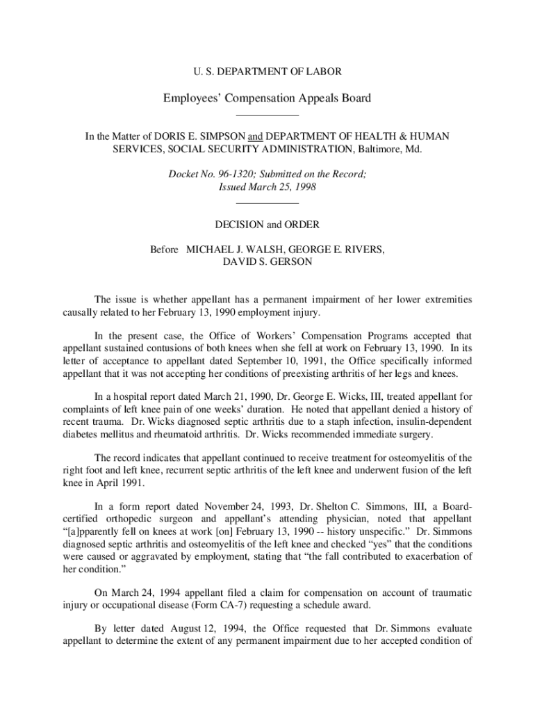 Get the free 96-1320: DORIS E. SIMPSON and DEPARTMENT OF HEALT...
