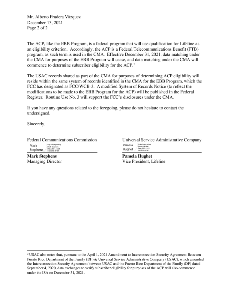 December 13, 2021, Mr. Alberto Traders Vazquez Administrator Administration for the Socioeconomic Development of the Family Capital Office Building P.O. Box 800 San Juan Puerto Rico 009100800 Re:Computer