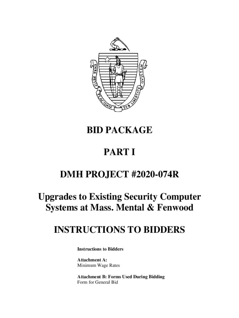 BID PACKAGE PART I DM PROJECT #2020074R Upgrades to Existing Security Computer Systems at Mass. Mental & Fen wood INSTRUCTIONS TO BIDDERS Instructions to Bidders Attachment A: Minimum Wage Rates Attachment