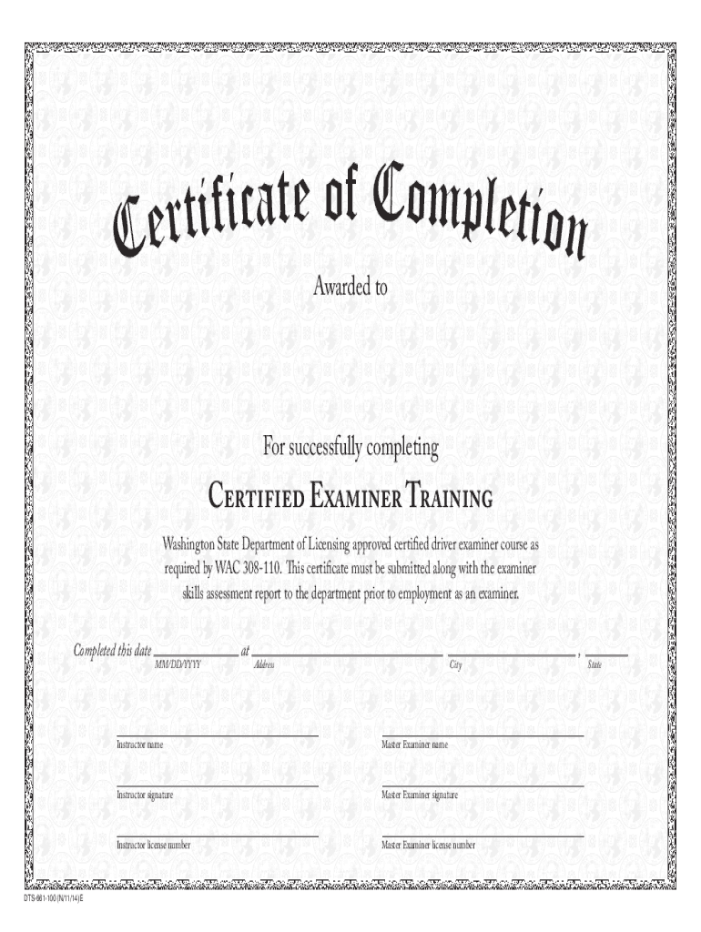 Get the free Certified Examiner Training Certificate of Completion