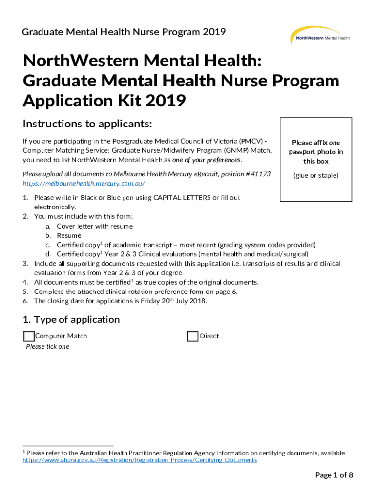 Graduate Mental Health Nurse Program 2019NorthWestern Mental Health: Graduate Mental Health Nurse Program Application Kit 2019 Instructions to applicants: If you are participating in the Postgraduate