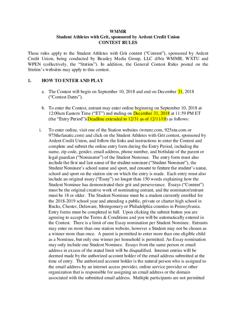 MMR Student Athletes with Grit, sponsored by Ardent Credit Union CONTEST RULES These rules apply to the Student Athletes with Grit contest (Contest), sponsored by Ardent Credit Union, being conducted