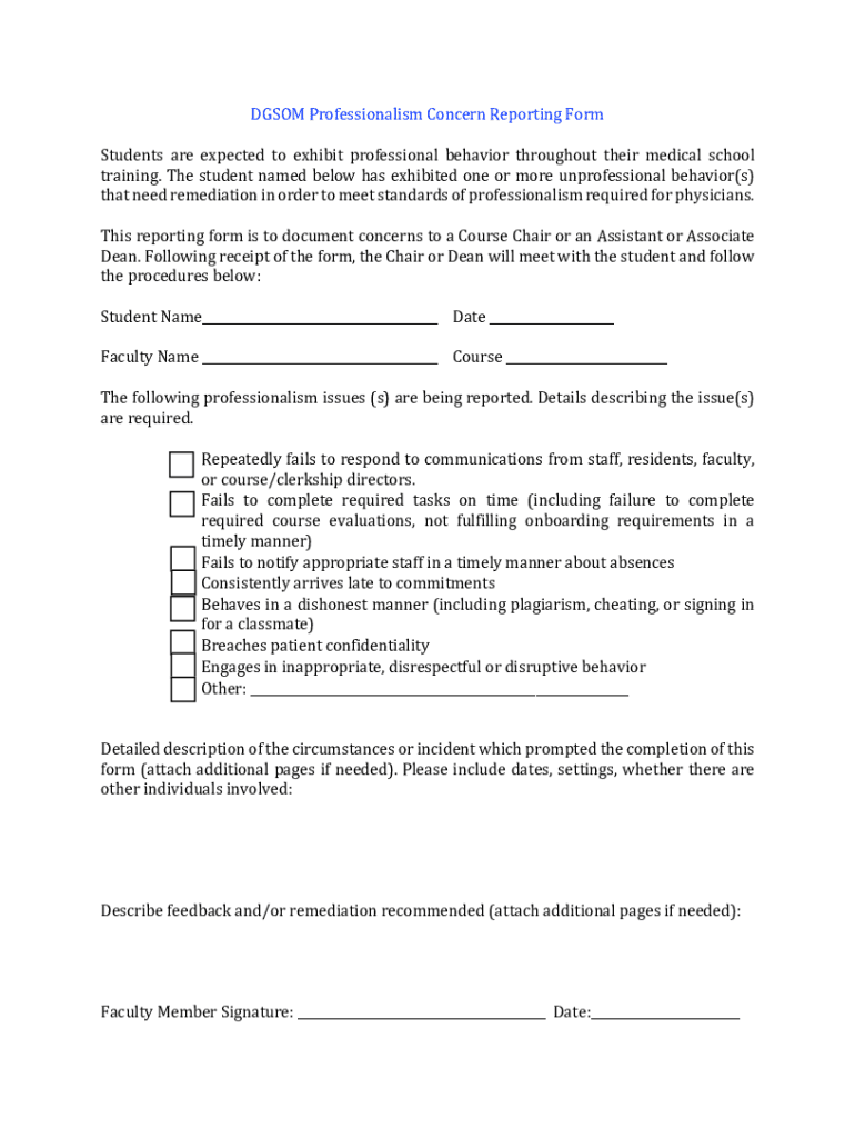 DGS OM Professionalism Concern Reporting FormStudents are expected to exhibit professional behavior throughout their medical school training. The student named below has exhibited one or more unprofessional
