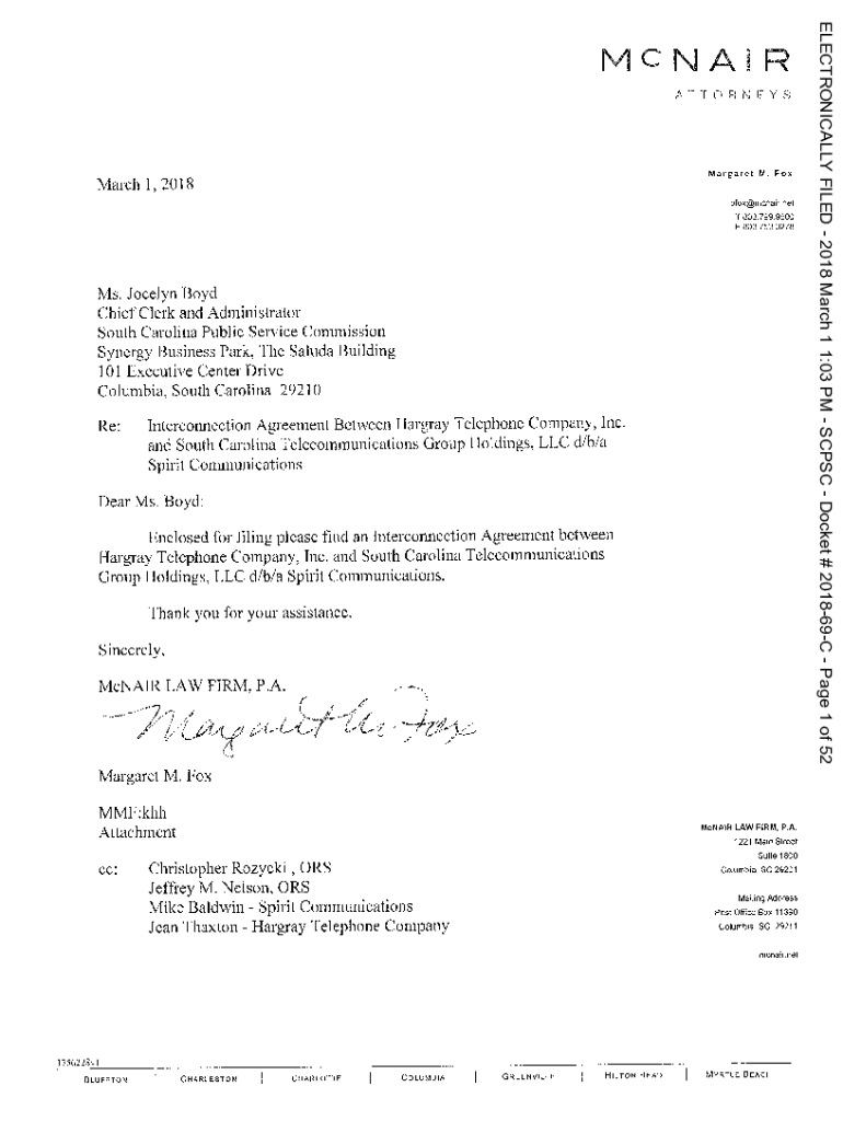 20\'Margaret /if March I, IOBNFYsM. Foxpfotmmcna r net T 803 799 F 803 7539800 3278Ms. Jocelyn Boyd Chief Clerk and Administrator South Carolina Public Service Commission Synergy Business Park, The