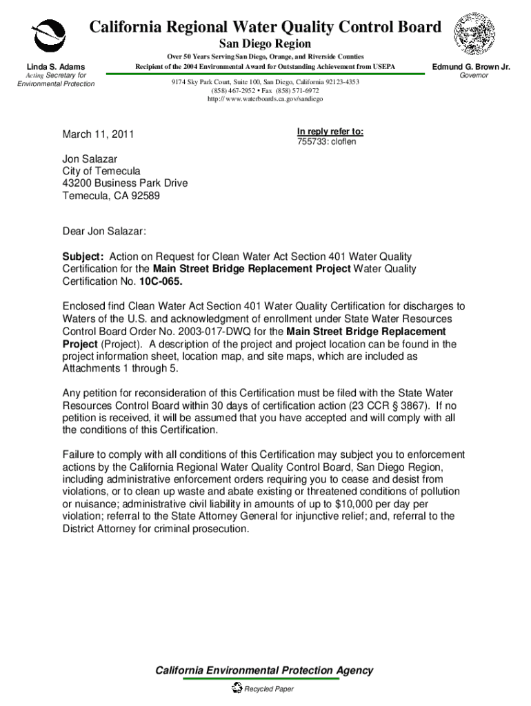 California Regional Water Quality Control Board San Diego Region Linda S. Passover 50 Years Serving San Diego, Orange, and Riverside Counties Recipient of the 2004 Environmental Award for Outstanding