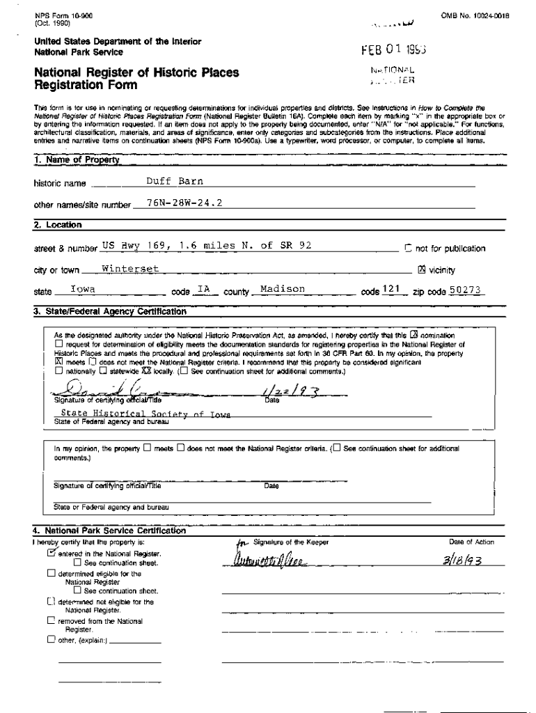 OMB No. 100240018NFS Form 10900 (Oct. 1990)United States Department of the Interior National Park Service FEB 01 1Sb3National Register of Historic Places Registration Formats form is for use in nominating