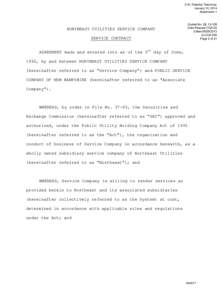 ETC Rebuttal Testimony January 10, 2014, Attachment 1Docket No. DE 13108 Data Request OCA02 Dated 08/26/2013 QOCA004 Page 2 of 21NORTHEAST UTILITIES SERVICE COMPANY SERVICE CONTRACT AGREEMENT made