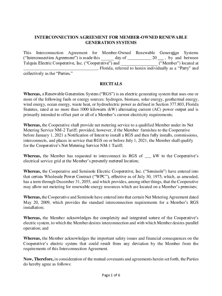 Get the free Standard Interconnection Agreement for Generation System Form