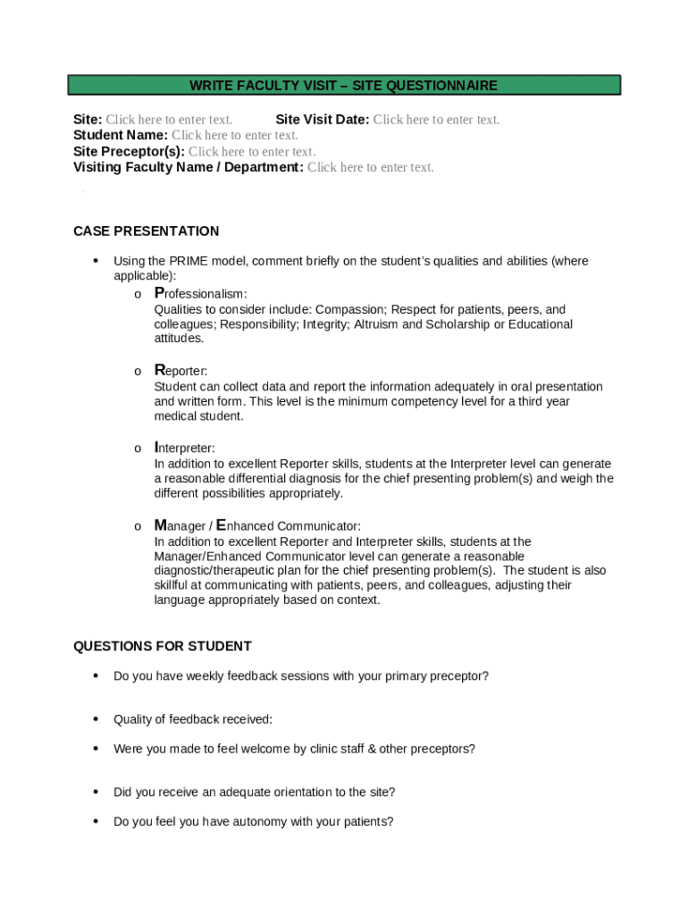 FACULTY VISIT STUDENT FEEDBACK template instructions