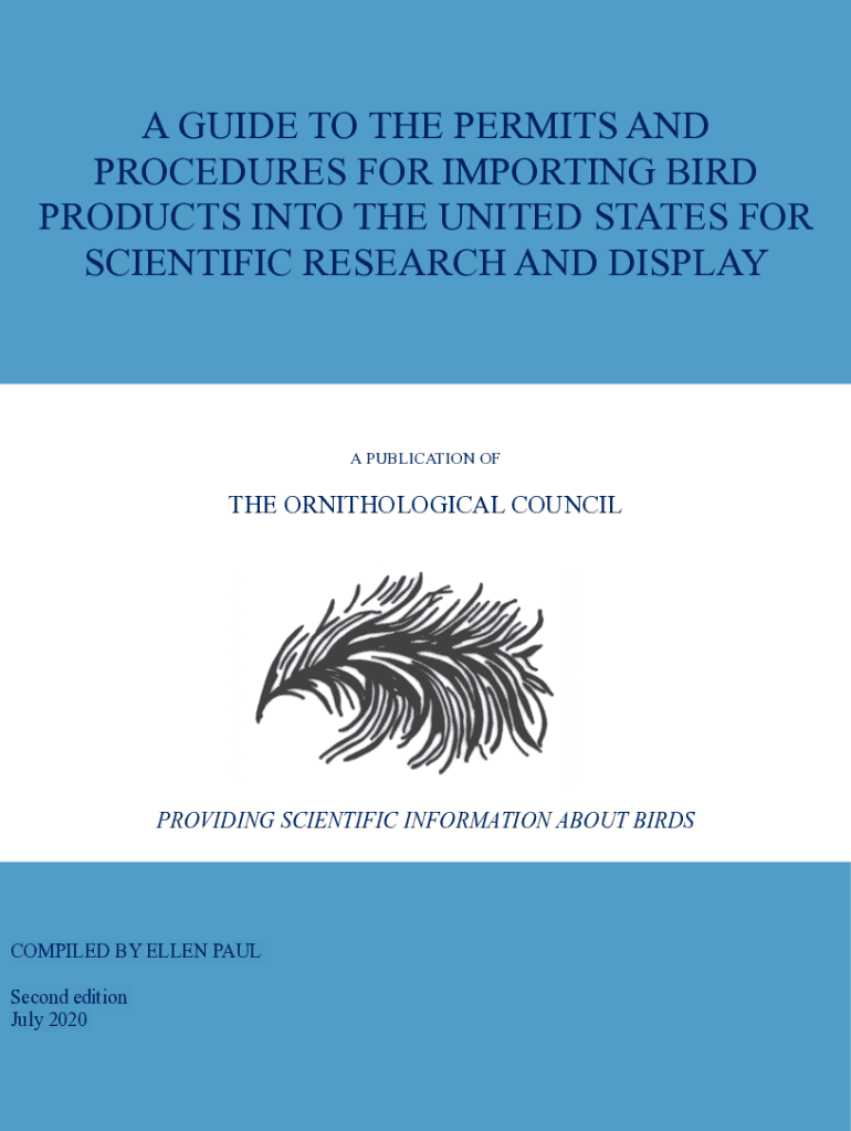 A GUIDE TO THE PERMITS AND PROCEDURES FOR IMPORTING BIRD PRODUCTS INTO THE UNITED STATES FOR SCIENTIFIC RESEARCH AND DISPLAY PUBLICATION THE ORNITHOLOGICAL COUNCILPROVIDING SCIENTIFIC INFORMATION