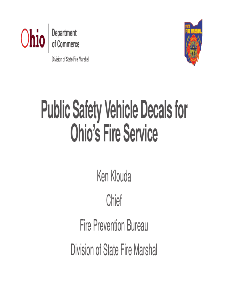 Public Safety Vehicle Decals for Ohio's Fire Service Ken KloudaChief Fire Prevention Bureau Division of State Fire Marshal2Overview of your division, The Ohio Department of how it plays a role Commerce