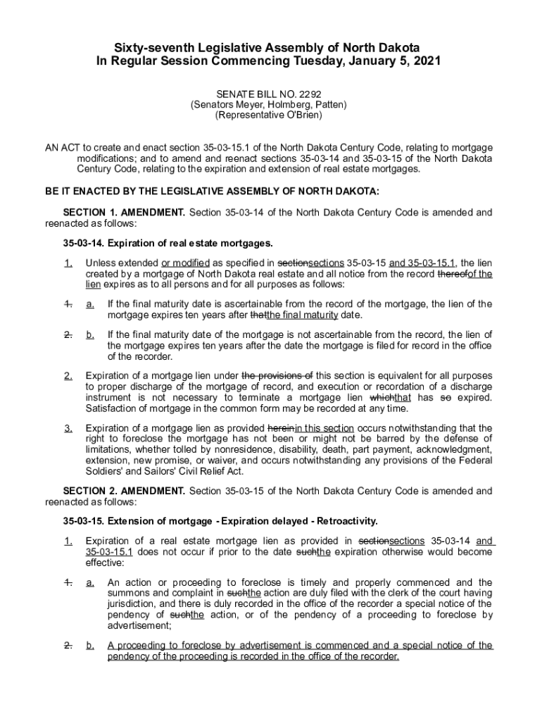 Get the free Enrolled Senate Bill No. 2292 - Sixty-seventh Legislative Assembly ...