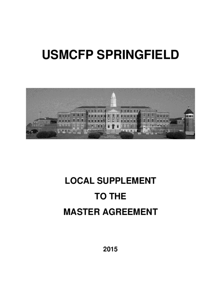 USMC FP SPRINGFIELDLOCAL SUPPLEMENT TO THE MASTER AGREEMENT2015PREAMBLE This supplemental is entered into by the US Medical Center for Federal Prisoners, Springfield, Missouri, herein after referred