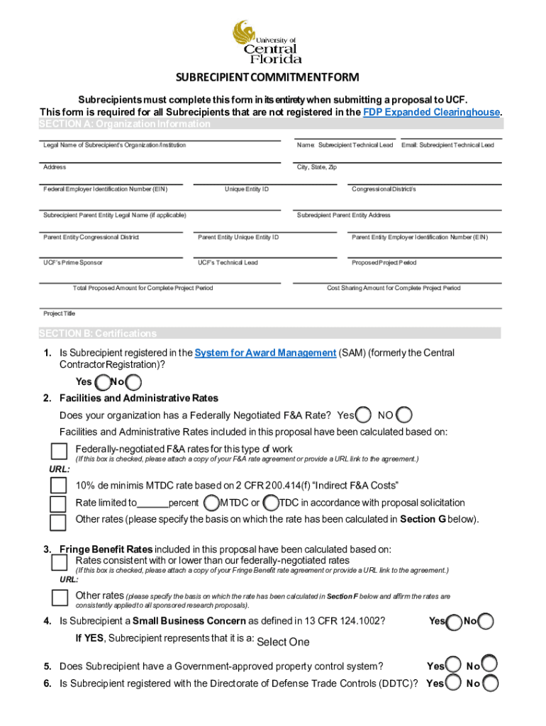 Get the free www.research.ucf.edudocumentsPDFSUBRECIPIENT COMMITMENT FORM - University of Central...