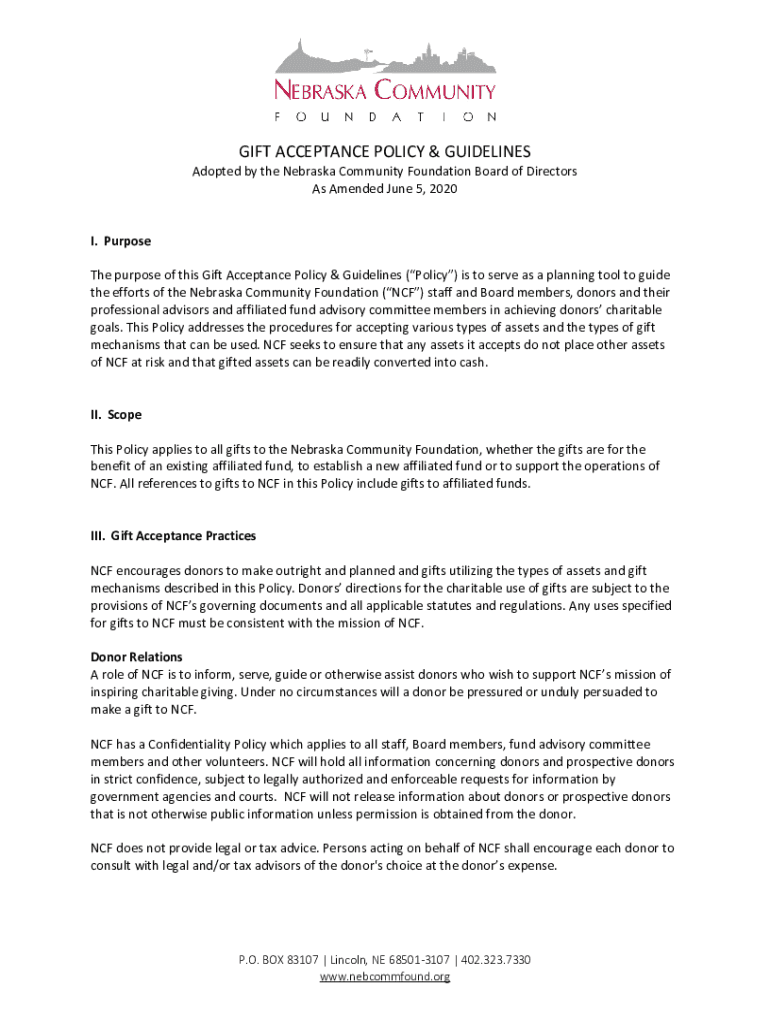 Get the free NCF Gift Acceptance Policy & Guidelines2020