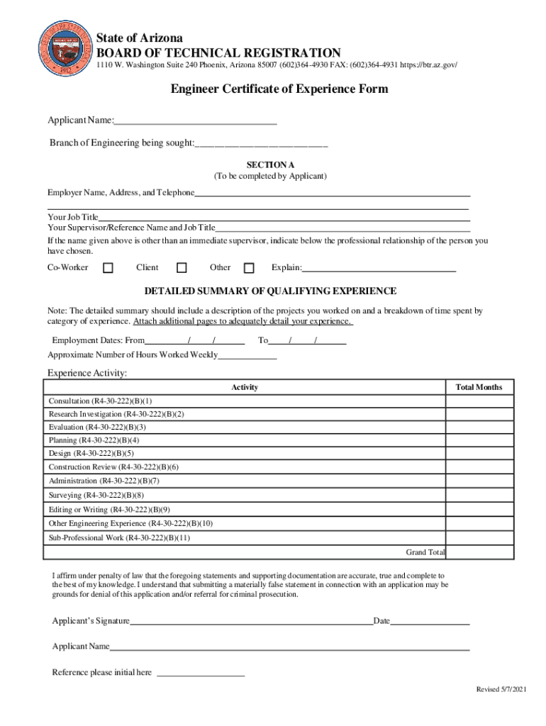 Get the free btr.az.govsitesdefaultEngineer Fundamentals Exam Authorization Packet - Arizona