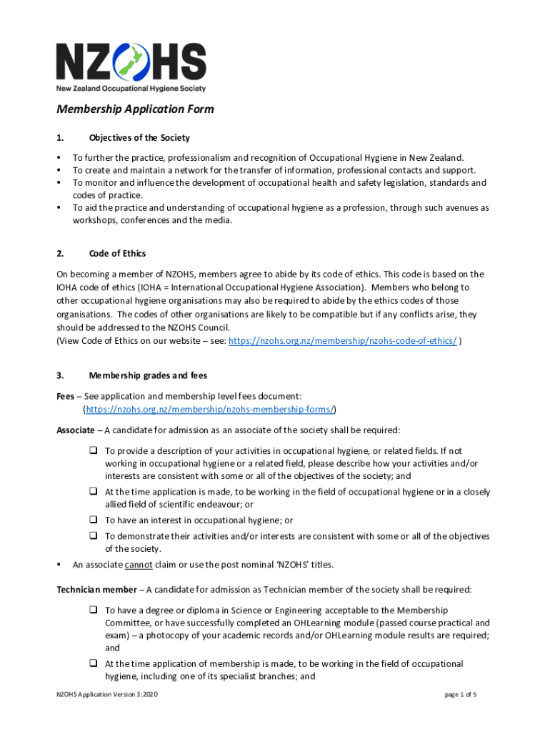 Get the free NZOHS Membership Application Form Version 3 2020 AUGUST.docx - nzohs org