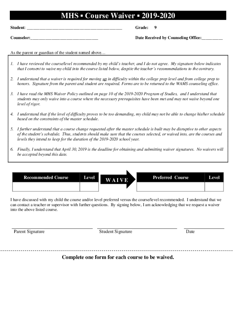 Get the free www.coursehero.comCourse-Waiver-Form-1pdfCourse Waiver Form (1).pdf - McEachern High...