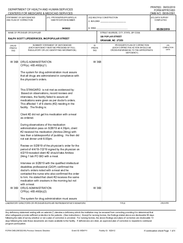 PRINTED: 06/03/2019 FORM APPROVEDDEPARTMENT OF HEALTH AND HUMAN SERVICES CENTERS FOR MEDICARE & MEDICAID SERVICES STATEMENT OF DEFICIENCIES AND PLAN OF CORRECTION(X1) PROVIDER/SUPPLIER/CIA IDENTIFICATION
