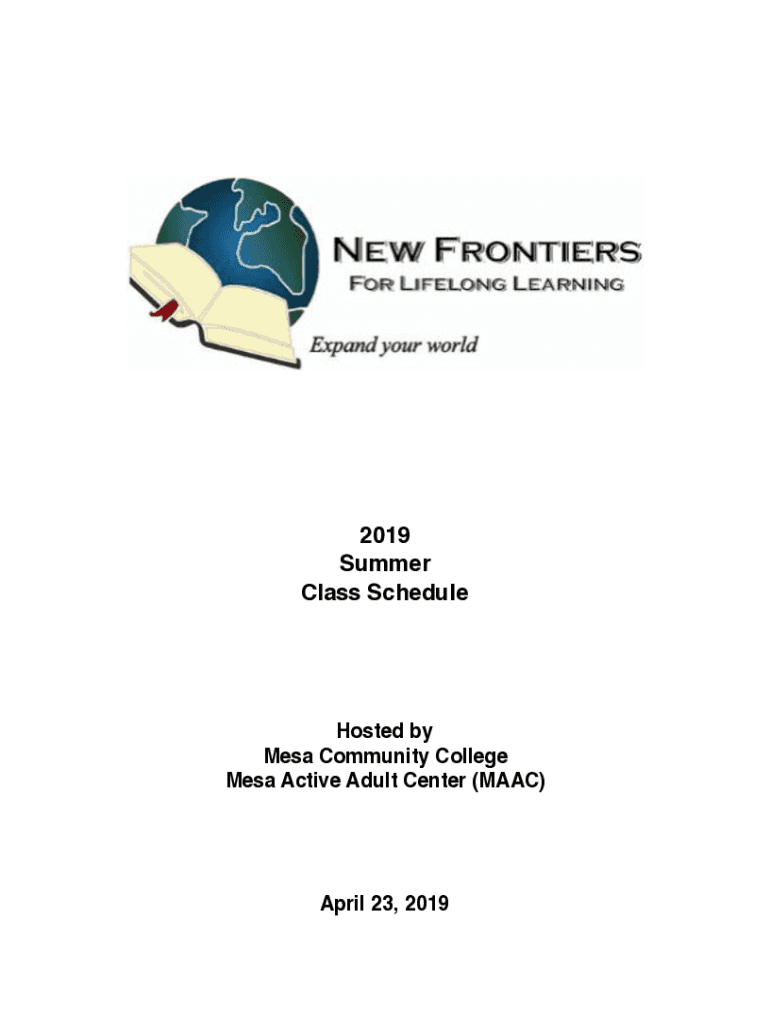 2019 Summer Class ScheduleHosted by Mesa Community College Mesa Active Adult Center (MAC)April 23, 20192019 Summer Classes by Day Monday Bare-bones Theater Troupe Beatles Rubber Soul Album Low Impact