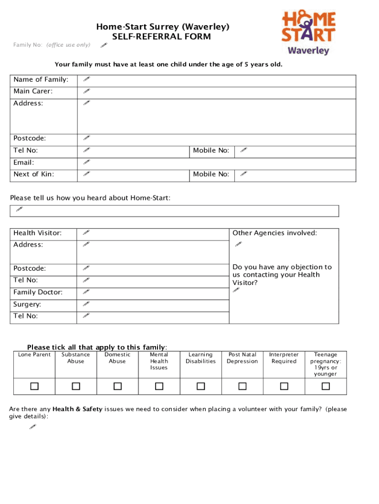 Get the free homestartwaverley.orgwp-contentuploadsHome-Start Surrey (Waverley) SELF-REFERRAL FORM