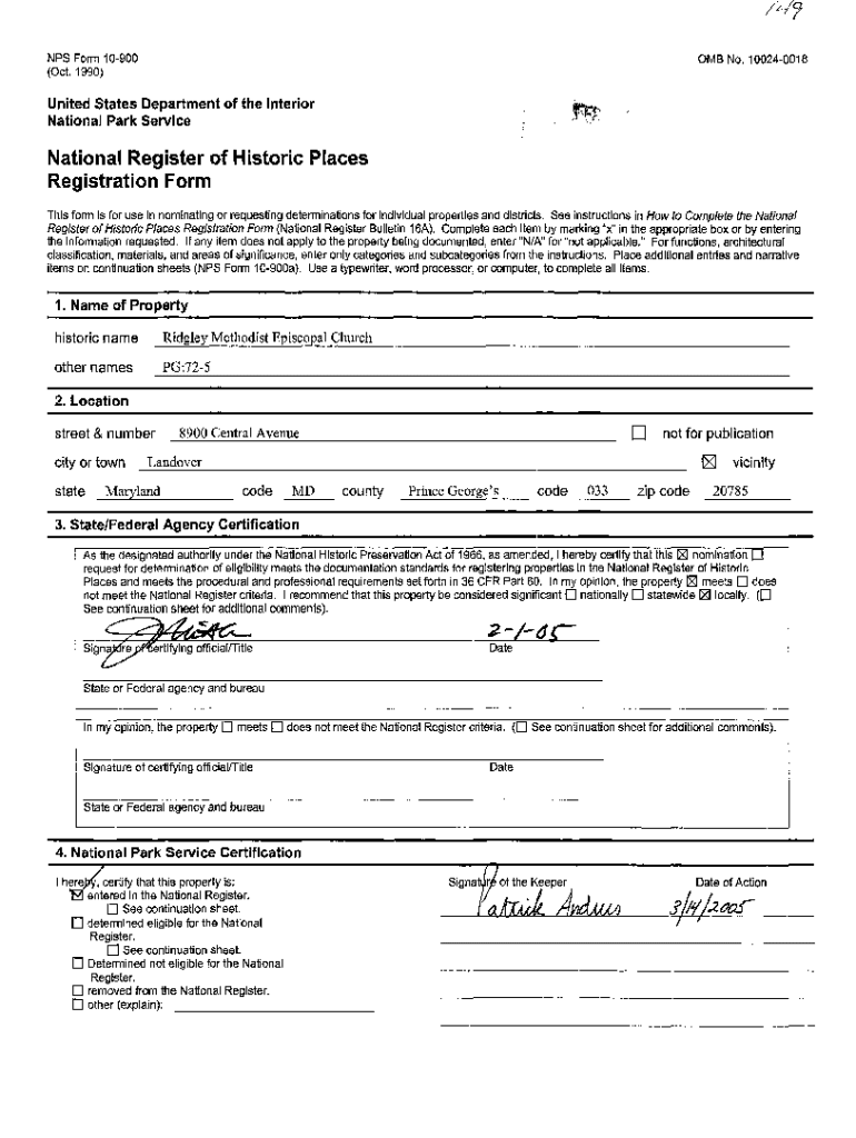 NPS Form 10900 (Oct. 1990)OMB No. 100240018United States Department of the Interior National Park ServiceINational Register of Historic Places Registration Form This form is for use in nominating