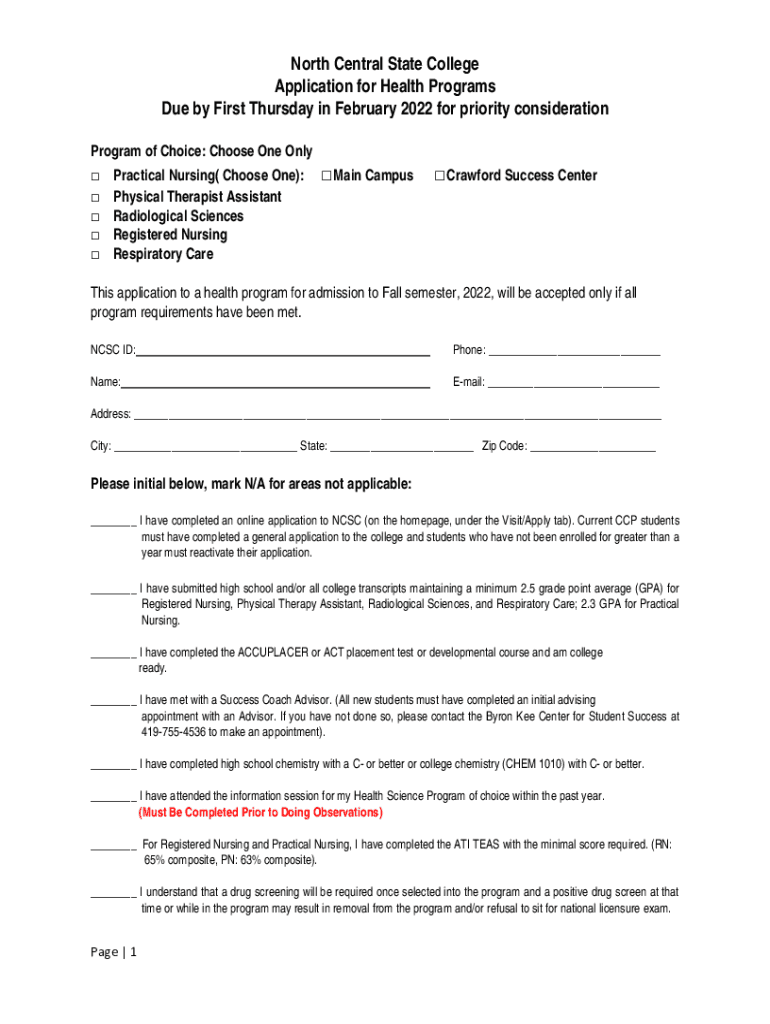 Get the free North Central State College Application for Health ...