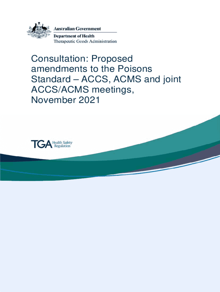 Consultation: Proposed amendments to the Poisons Standard ACTS, ACMs and joint ACTS/ACMs meetings, November 2021Therapeutic Goods AdministrationDocument title V1.0 Month 2012Page 2 of 38Therapeutic