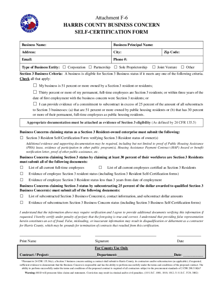 Attachment F6 HARRIS COUNTY BUSINESS CONCERN RECERTIFICATION FORM Business Name:Business Principal Name:Address:City:Email:Phone #:Type of Business Entity: Corporation Partnership Sole Proprietorship