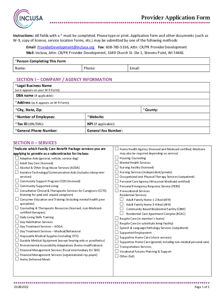Provider Application FormInstructions: All fields with a * must be completed. Please type or print. Application form and other documents (such as