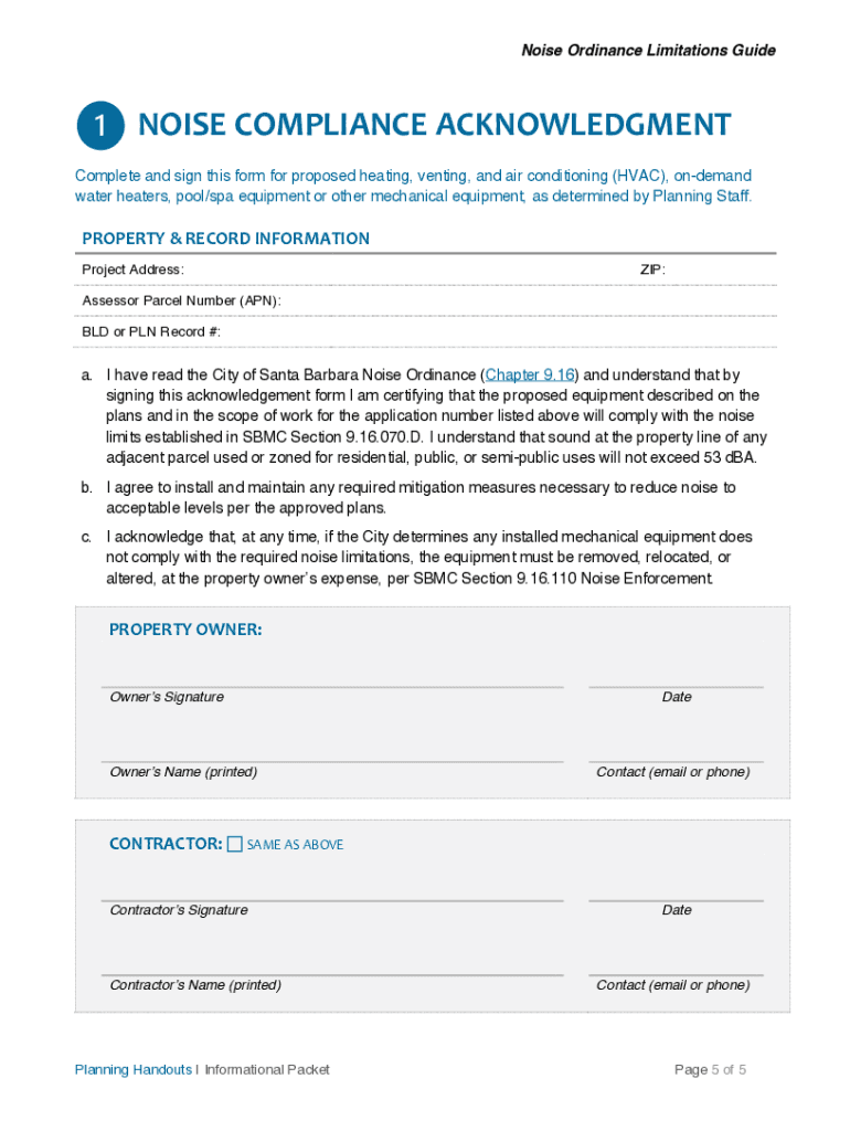 COMMUNITY DEVELOPMENT DEPARTMENT 630 GARDEN ST. SANTA BARBARA, CA 93101 (805) 5645578 | SantaBarbaraCA.noise ORDINANCE LIMITATIONS INFORMATIONAL PACKET QUESTIONS? Additional information regarding
