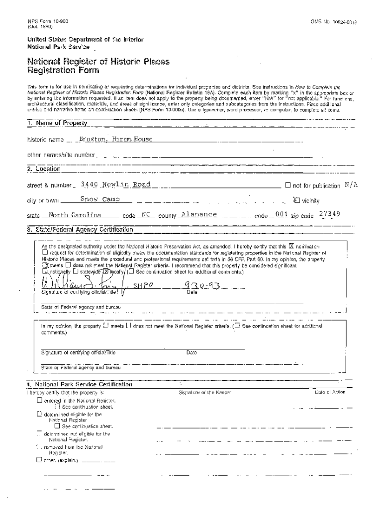 NPS r:ORM 10900 (Oct. 1990)OMS No. 100240018United States National Park Services form is for use in nominating or requesting determinations for individual properties and districts. See instructions