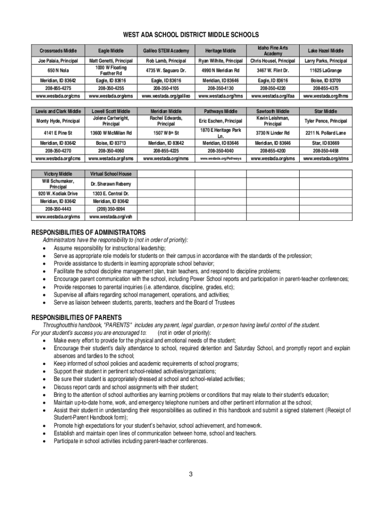 Joint School District No. 2 West Ada School District 1303 E. Central Drive Meridian, Idaho 83642MIDDLE SCHOOL STUDENT PARENT HANDBOOK 20212022 All information in this handbook is important. Several