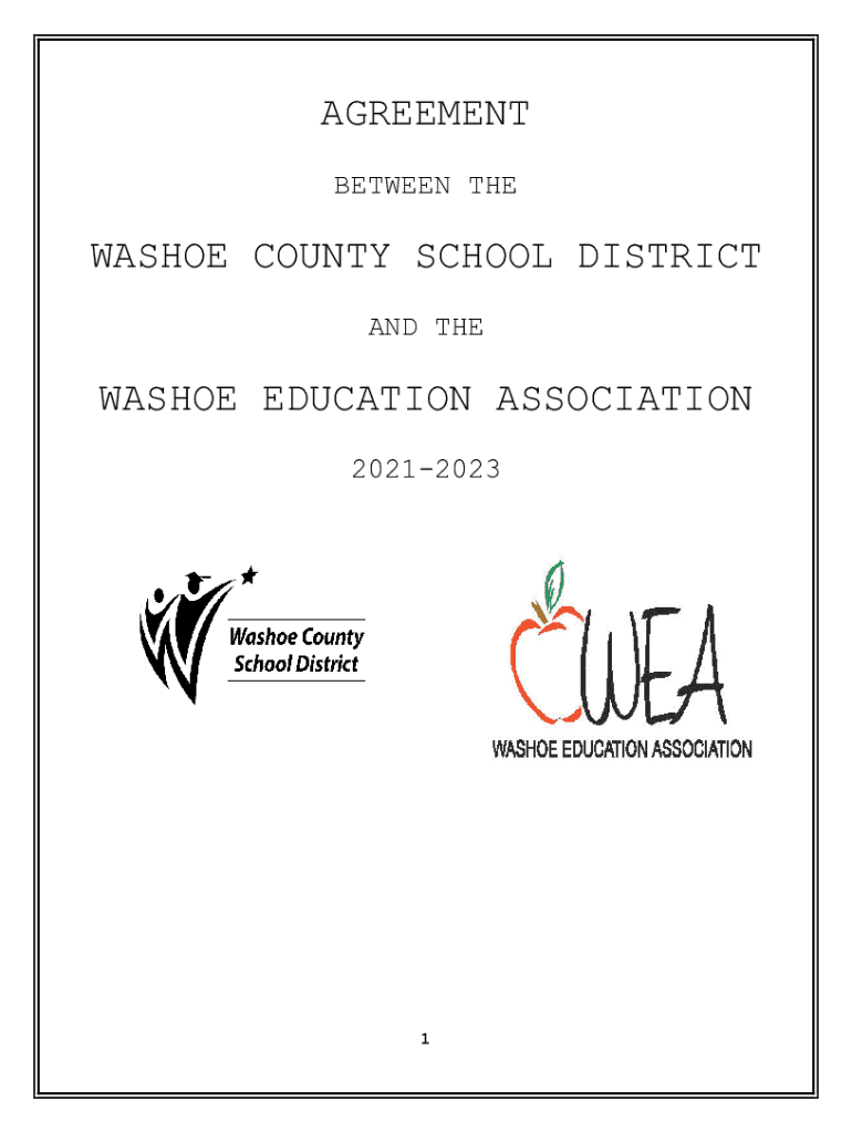AGREEMENT BETWEEN THEWASHOE COUNTY SCHOOL DISTRICT AND THEWASHOE EDUCATION ASSOCIATION 20212023.WASTE EDUCATION ASSOCIATION1EFFECTIVE JULY 1, 2021TABLE OF CONTENTS PAGE ARTICLE 1 ARTICLE 2 ARTICLE