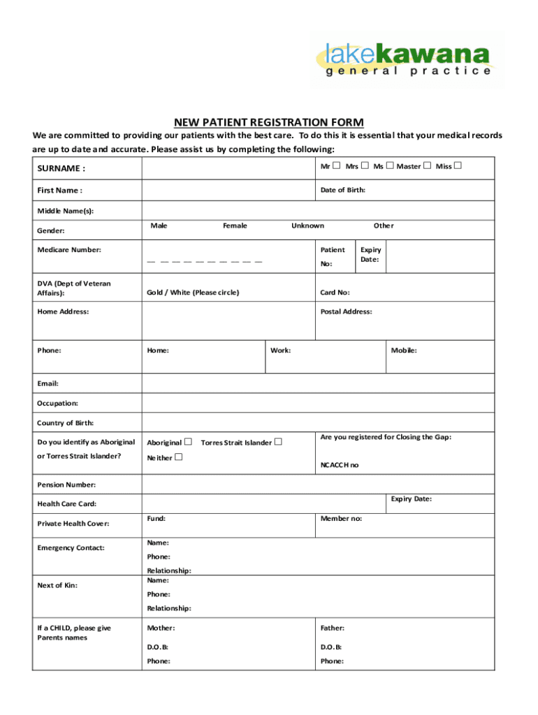 NEW PATIENT REGISTRATION FORM We are committed to providing our patients with the best care. To do this it is essential that your medical records are up to date and accurate. Please assist us by completing