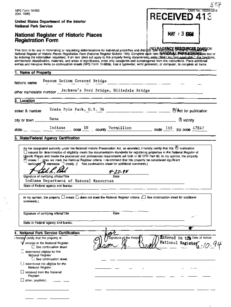 NPS Form 10900 (Oct. 1990)OMB No. 100240018RECEIVED 41United States Department of the Interior National Park Serviceman \'31994National Register of Historic Places Registration Forms form is for use