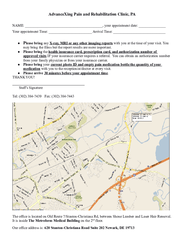 Advancing Pain and Rehabilitation Clinic, PA NAME: ___, your appointment date: ___ Your appointment Time: ___ Arrival Time: ___ Please bring any Ray, MRI or any other imaging reports with you at the