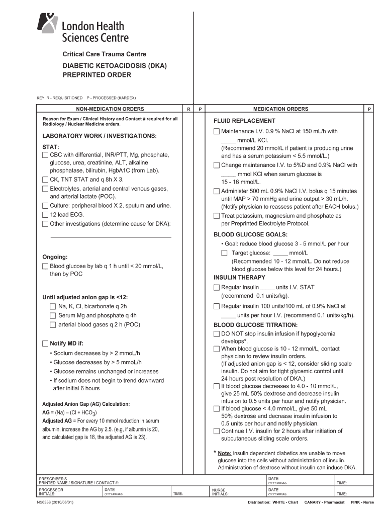 Critical Care Trauma Center DIABETIC KETOACIDOSIS (DKA) PREPRINTED ORDER KEY: R REQUISITIONED P PROCESSED (GARDEN) MEDICATION ORDERS R Reason for Exam / Clinical History and Contact # required for