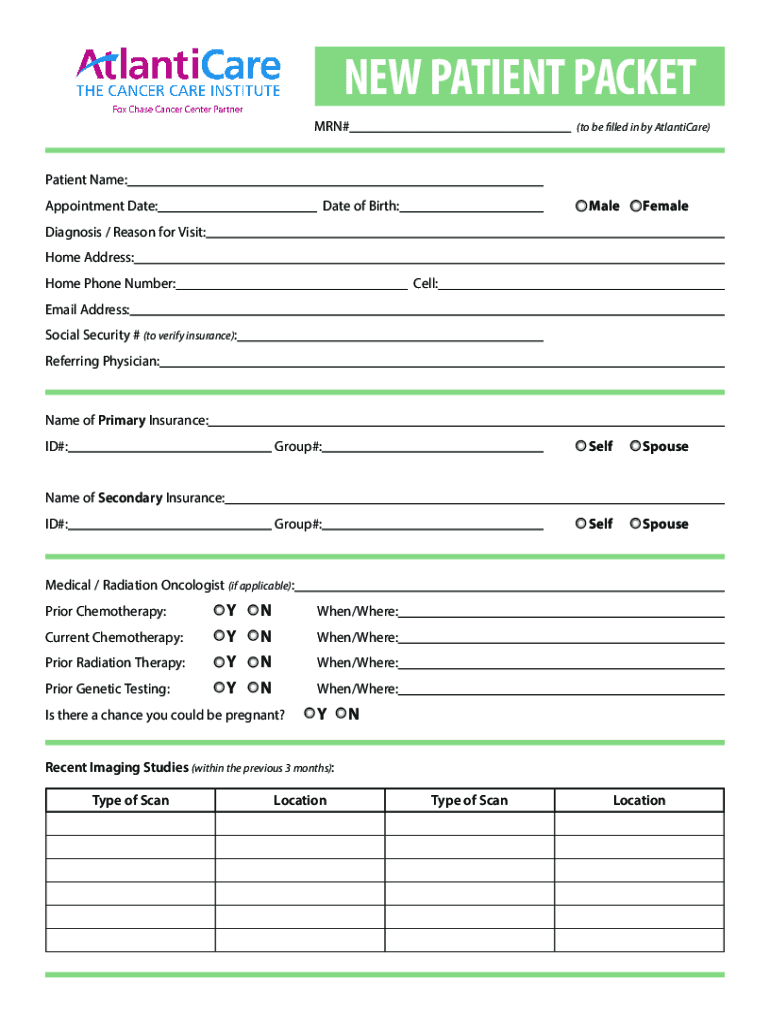 NEW PATIENT PACKET MAN#(to be filled in by the Atlantic)Patient Name:MaleFemaleGroup#:SelfSpouseGroup#:SelfSpouseAppointment Date:Date of Birth:Diagnosis / Reason for Visit:Home Address:Home Phone