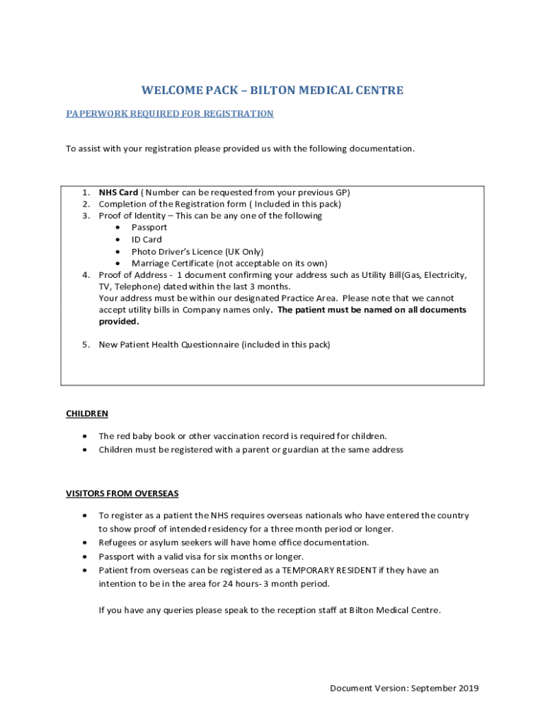Get the free BILTON MEDICAL CENTRE PATIENT CARED FOR REGISTRATION FORM
