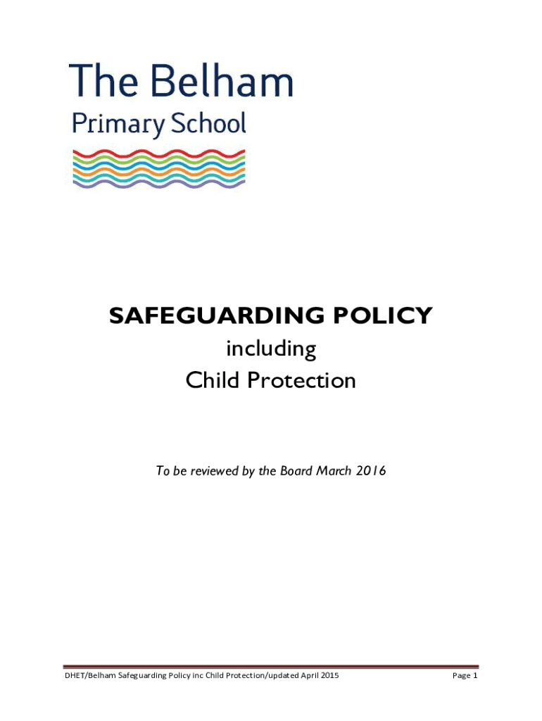 SAFEGUARDING POLICY including Child Protection be reviewed by the Board March 2016DHET/Kelham Safeguarding Policy inc Child Protection/updated April 2015Page 1Contents Safeguarding Policy3Governor