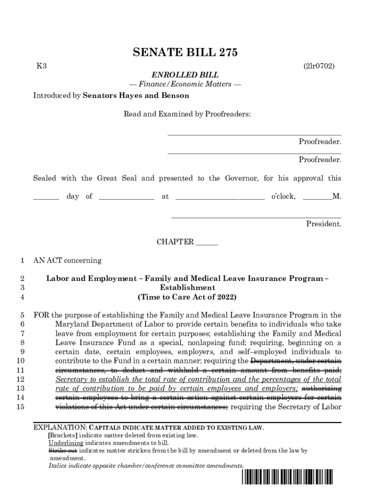 SENATE BILL 275 K3(2lr0702)ENROLLED BILL Finance/Economic Matters Introduced by Senators Hayes and Benson Read and Examined by Proofreaders: ___ Proofreader. ___ Proofreader. Sealed with the Great