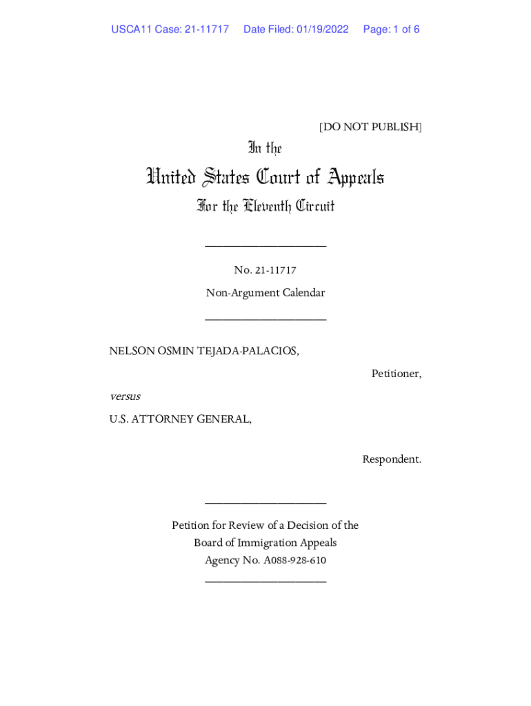 USCA11 Case: 2111717Date Filed: 01/19/2022Page: 1 of 6×DO NOT PUBLISH×In reunited States Court of Appeals For the Eleventh Circuit ___ No. 2111717 Argument Calendar ___ NELSON OSMAN TEJADAPALACIOS,