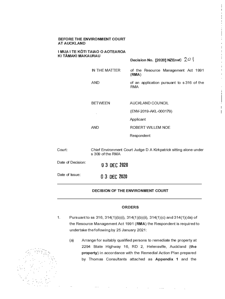 Get the free www.justice.govt.nzassetsDocumentsBEFORE THE ENVIRONMENT COURT AT AUCKLAND I MUA I T...