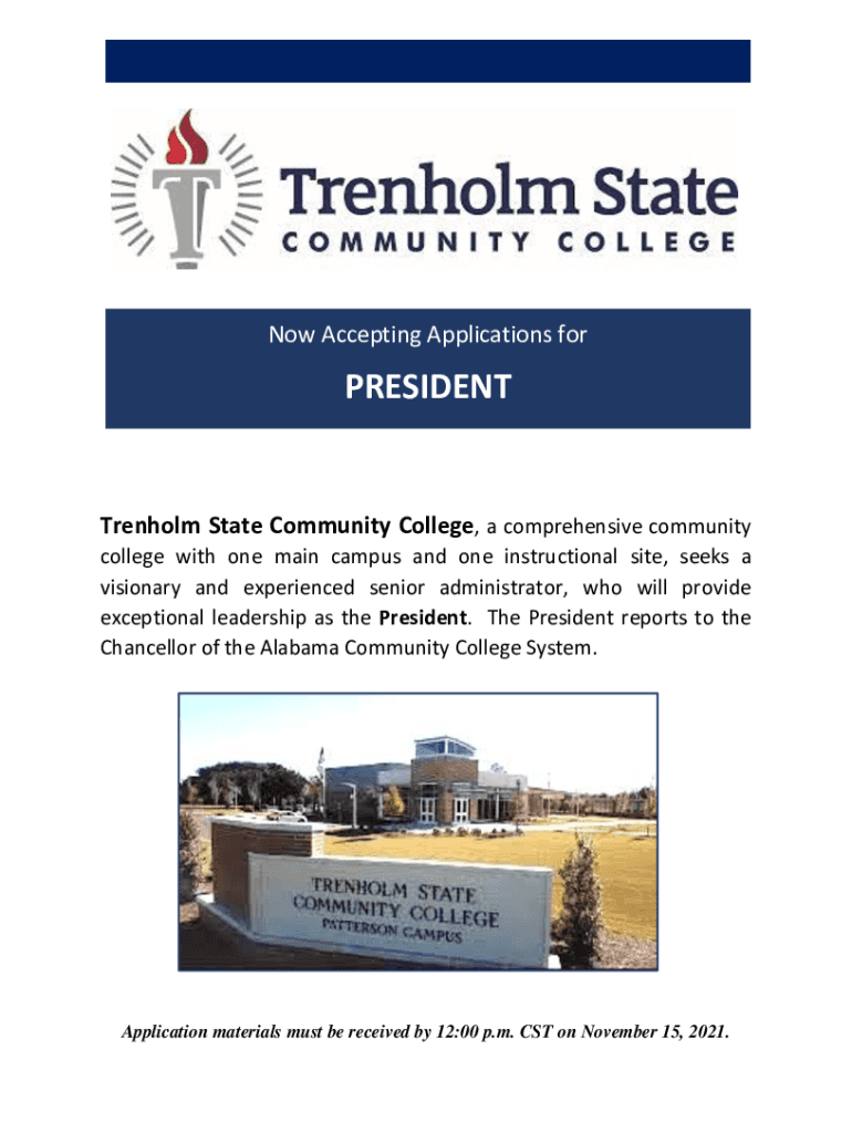 Now Accepting Applications forPRESIDENTTrenholm State Community College, a comprehensive community college with one main campus and one instructional site, seeks a visionary and experienced senior