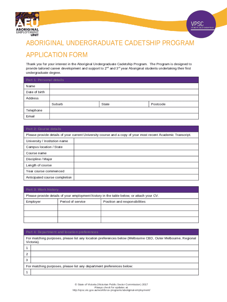 What is Application - Aboriginal Undergraduate Cadetship ... Form?