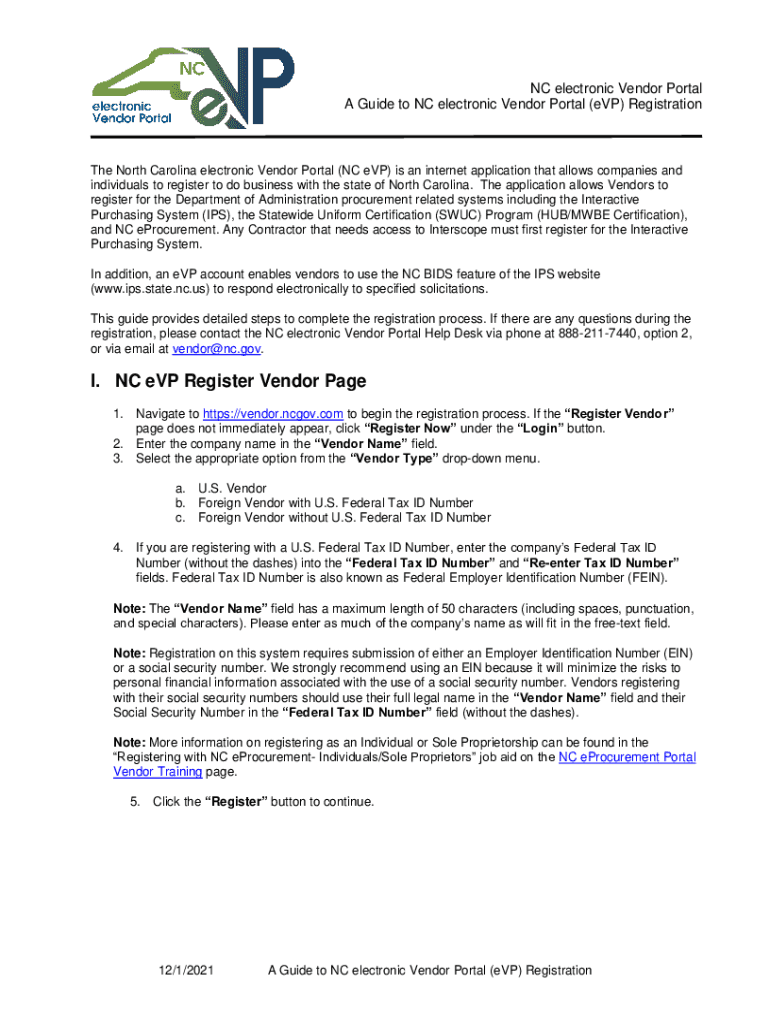 NC electronic Vendor Portal A Guide to NC electronic Vendor Portal (MVP) Registration North Carolina electronic Vendor Portal (NC MVP) is an internet application that allows companies and individuals